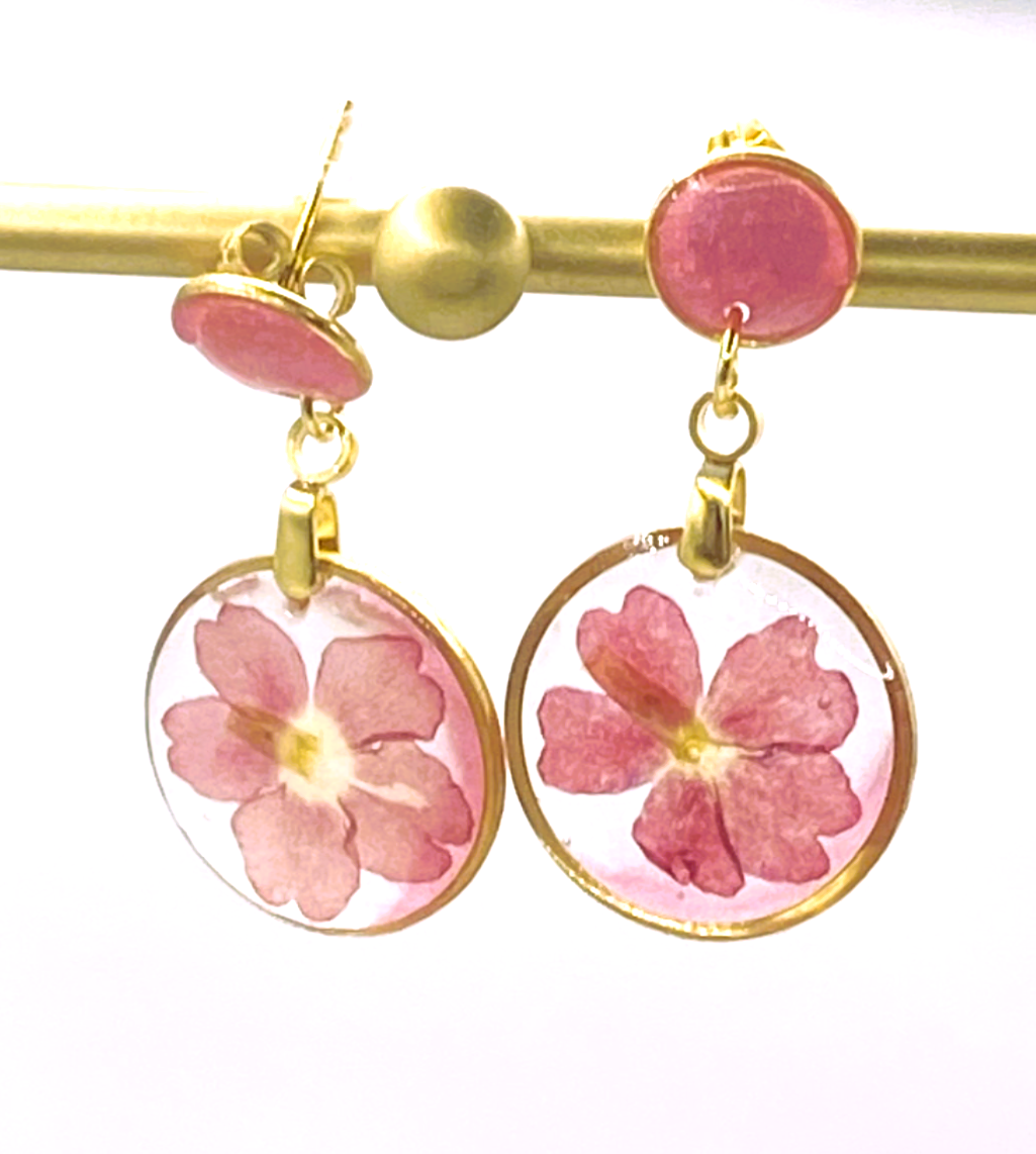 Brincos duplos com um toque muito delicado, em tons de rosa e dourado.